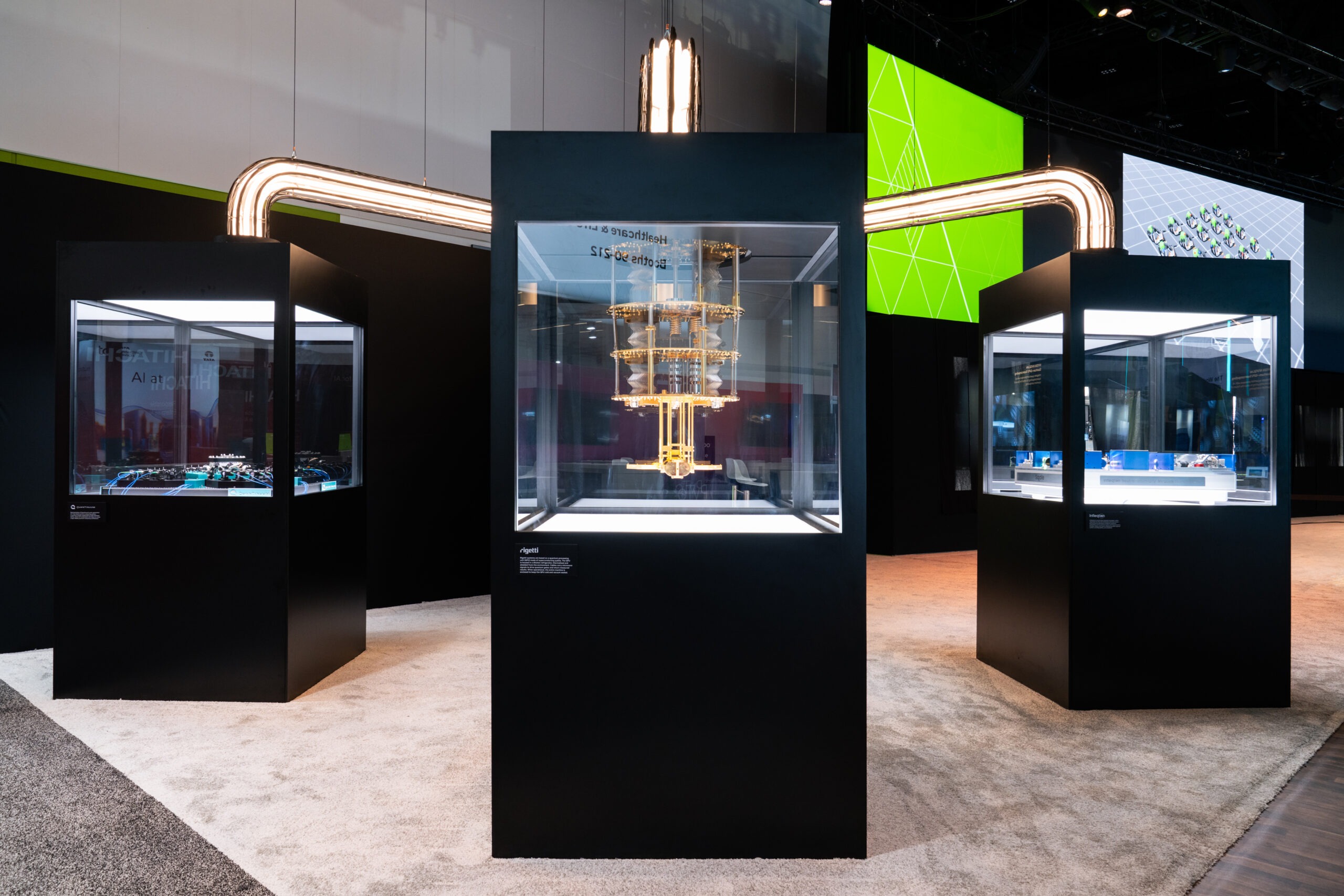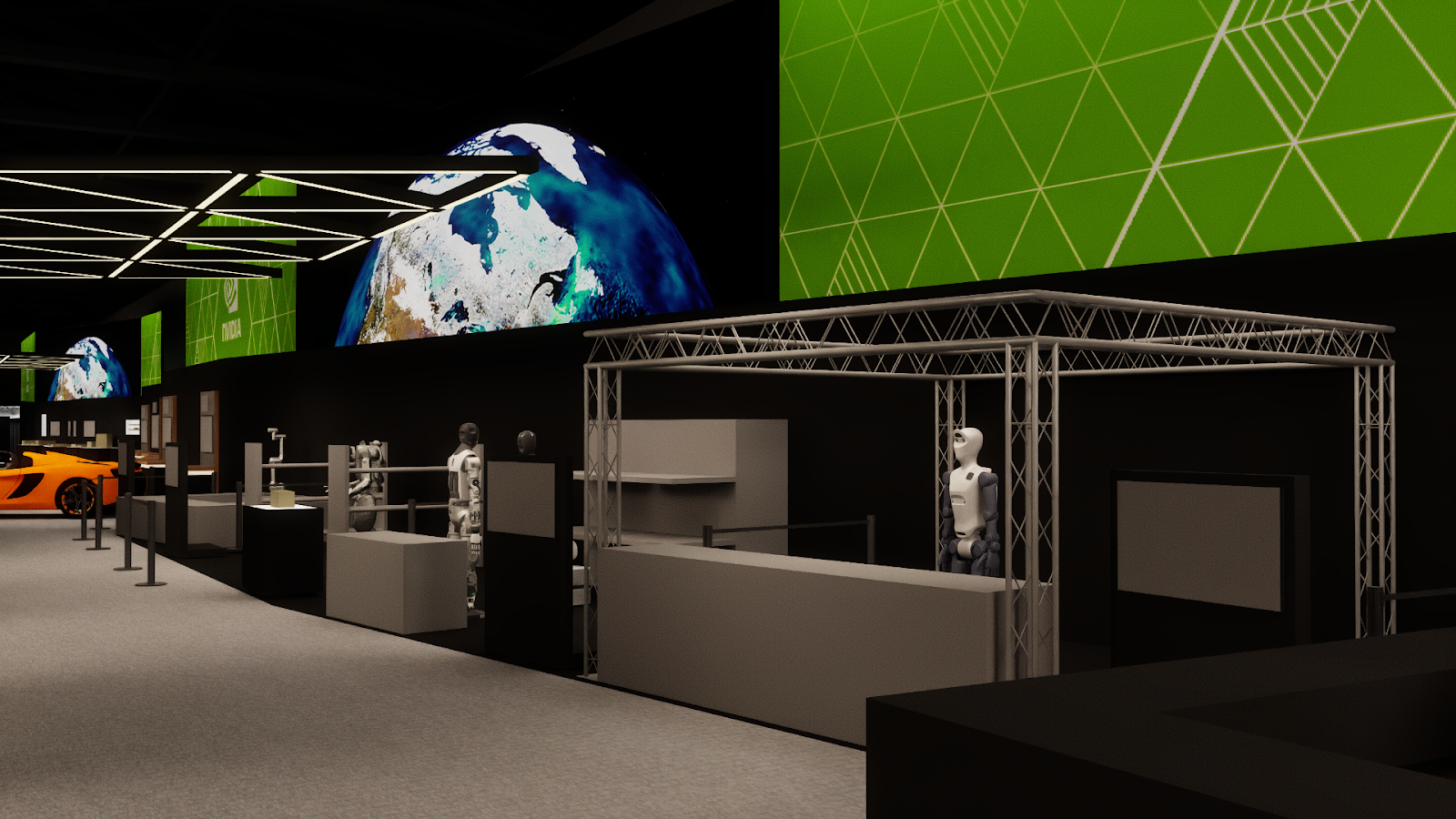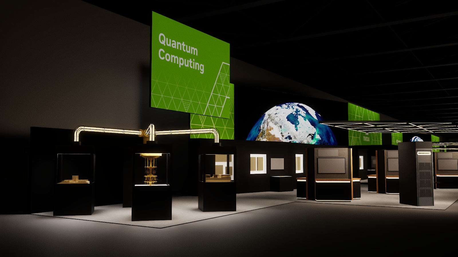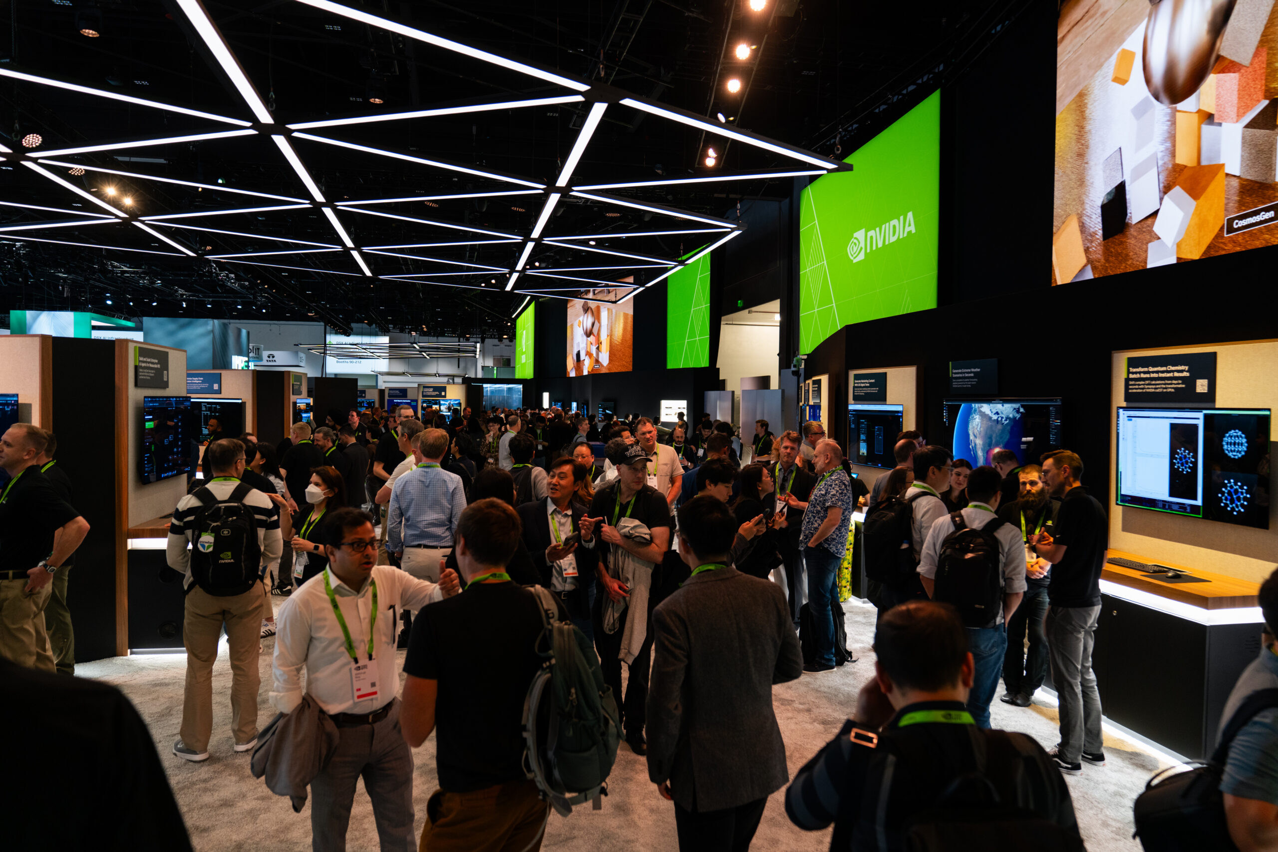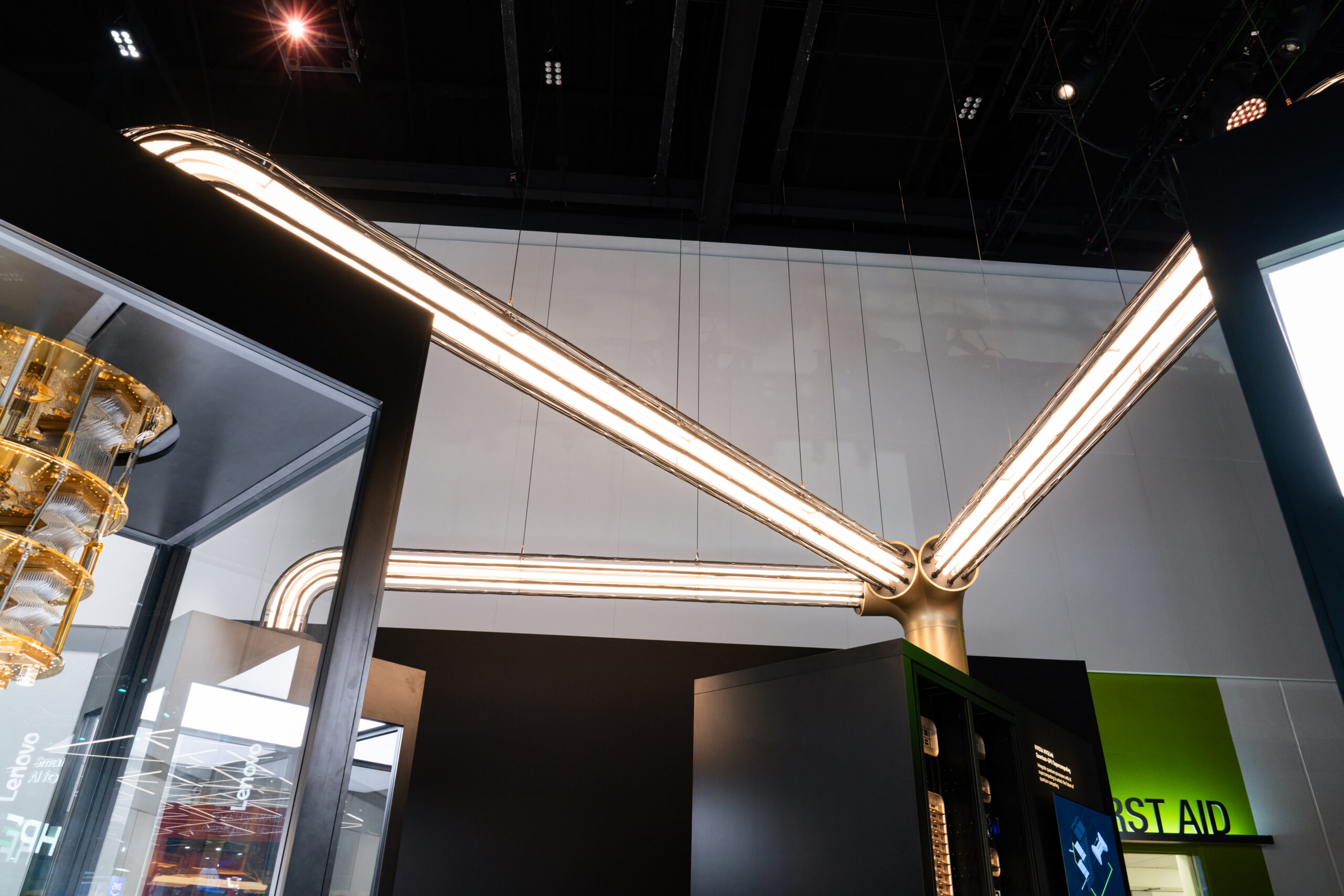 The conference was designed as a cohesive, future-facing environment that scaled across multiple zones while staying visually unified. The main NVIDIA booth anchored the experience, with Healthcare, Quantum, and Automotive branching out as distinct but connected spaces. A modular kit of parts kept the system flexible, while shared materials, lighting, and geometry tied everything together. The mirror room acted as a key moment of discovery, showcasing NVIDIA’s latest technology in an immersive and visually striking way.