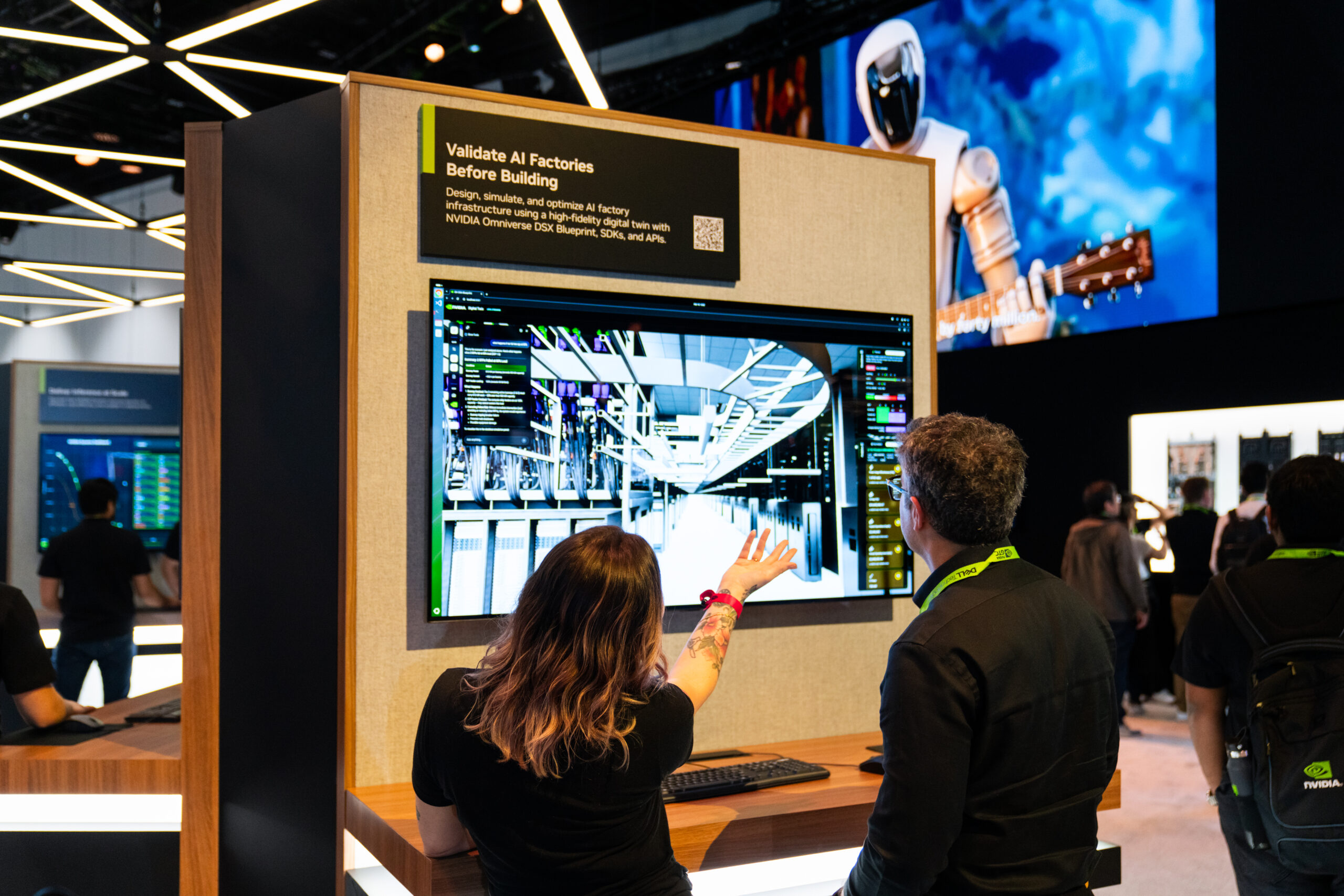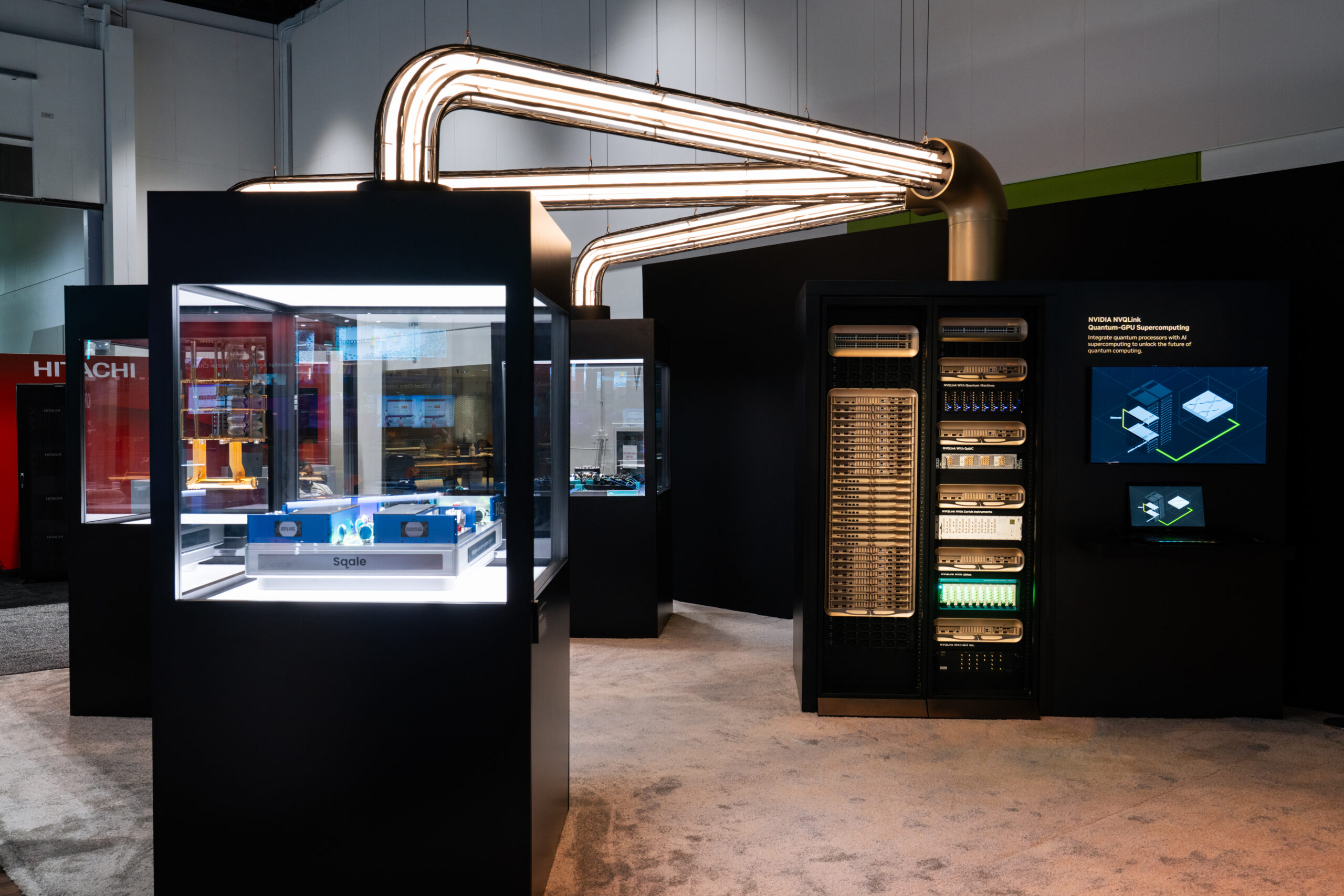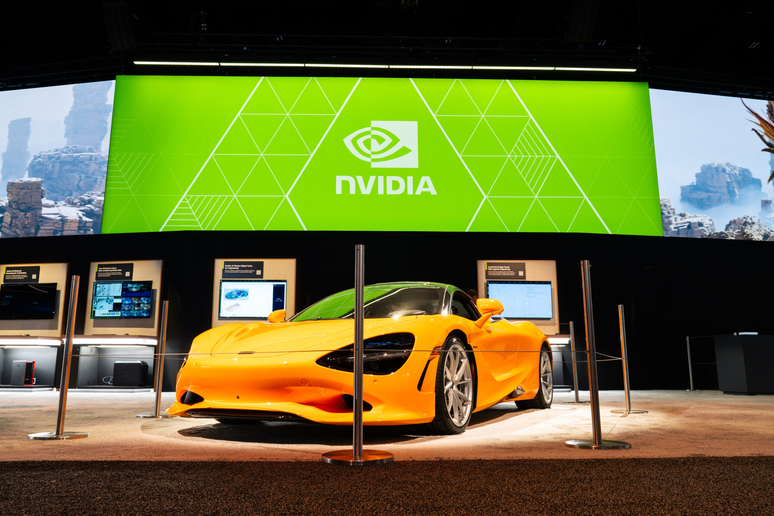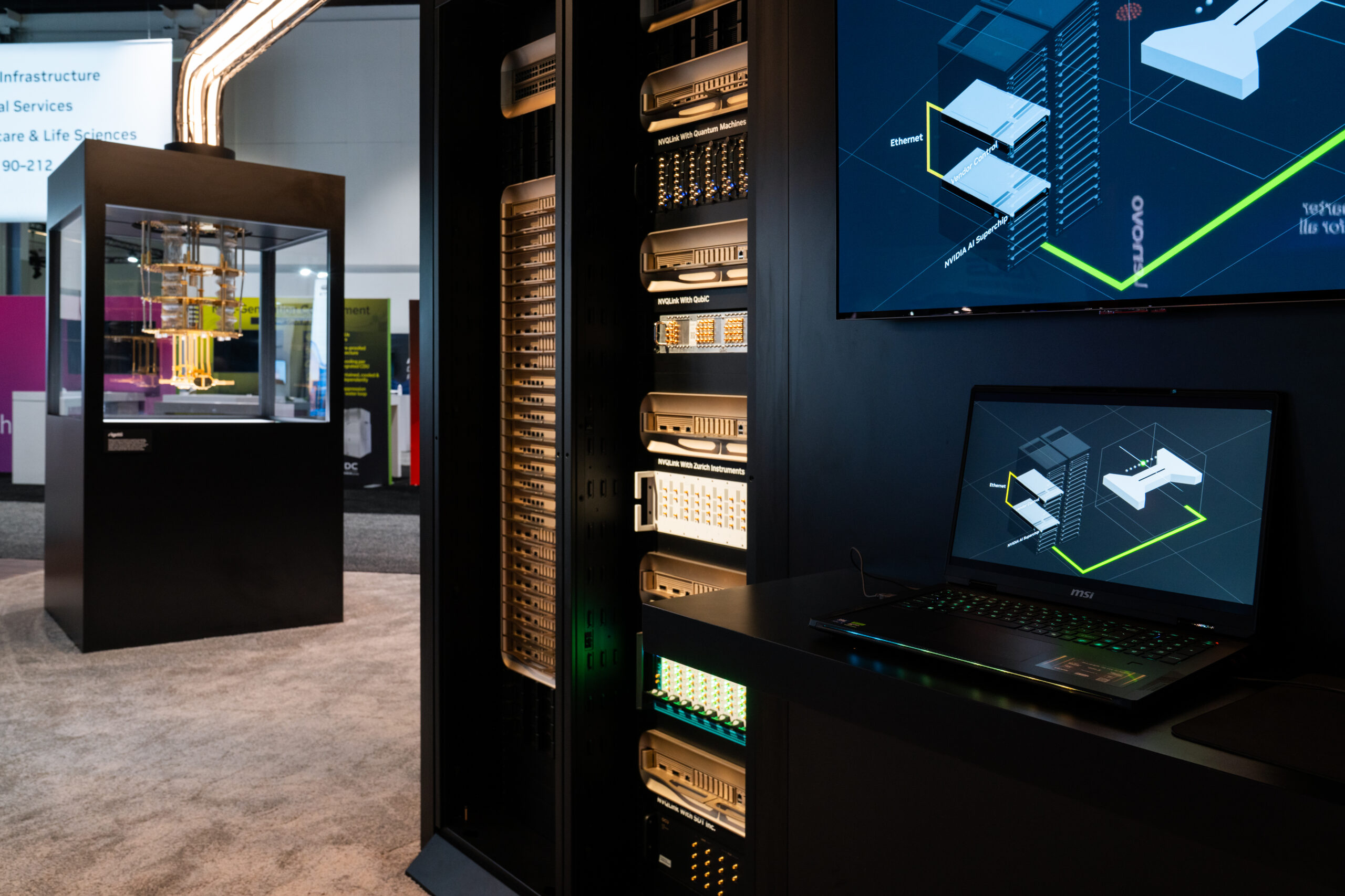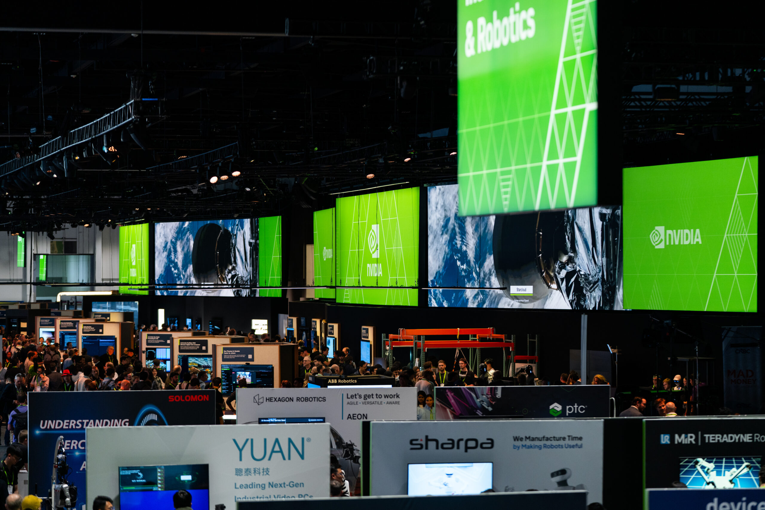 The conference was designed as a cohesive, future-facing environment that scaled across multiple zones while staying visually unified. The main NVIDIA booth anchored the experience, with Healthcare, Quantum, and Automotive branching out as distinct but connected spaces. A modular kit of parts kept the system flexible, while shared materials, lighting, and geometry tied everything together. The mirror room acted as a key moment of discovery, showcasing NVIDIA’s latest technology in an immersive and visually striking way.